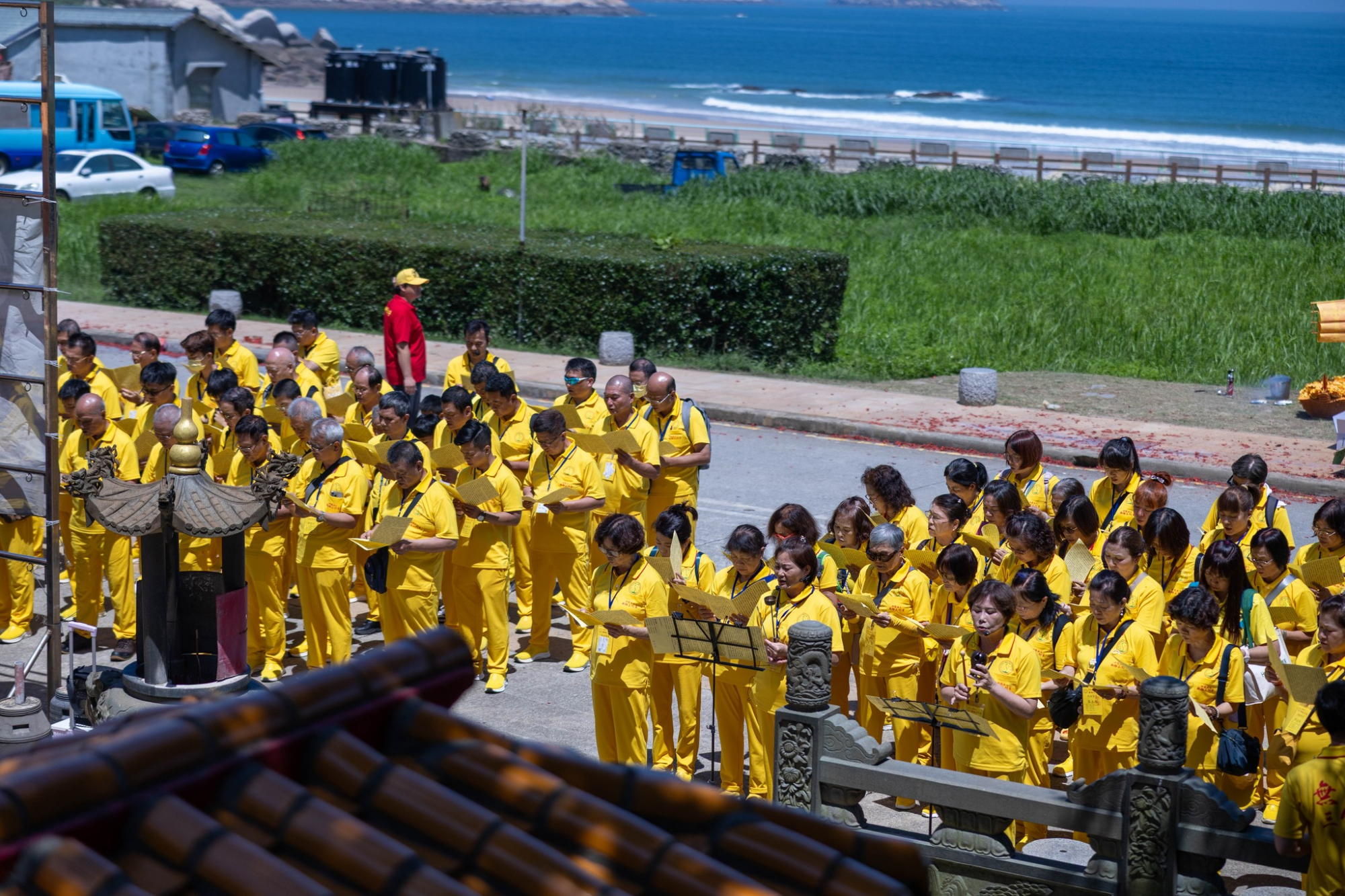 參訪團隊抵達馬祖南竿天后宮時,廟方主委及委員們熱情接待,,讓我們深感溫馨。信眾們遵循天上聖母的指示,在廟門前虔誠誦經並準備供品及海產圖樣普渡眾生,隨後與天后宮委員們一同祈願媽祖庇佑風調雨順、國泰民安。場面莊嚴隆重,充滿敬佩與感動。