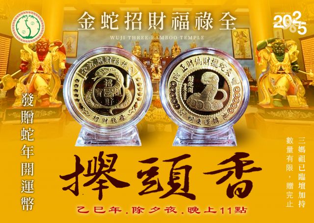 承襲古禮,祈福迎新 . 歲末年終,萬象更新。無極三竹宮謹訂於 #除夕夜 #農曆2025年12月29日 #時間23點 ,開春第一天,齊開大門儀式,新年攑頭香。恭請十方善信蒞臨,共沐神恩。 . 時值新春之際,祈願諸位善信在新的一年裡,福壽康寧、心想事成。本宮三媽祖特加持 蛇年開運幣,以贈信眾,祈求財源廣進、鴻運當頭。 . 子