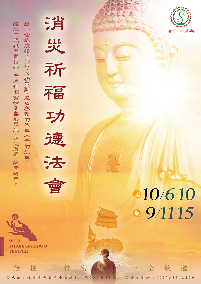 感謝各位人間菩薩的幫助,讓為期三天的『慈悲祈福功德法會』圓滿。感恩天上聖母 三媽祖與眾神佛的慈悲,因天災與人禍。無辜的往生的眾生,離苦得樂。普渡世間有情與無形眾生,為其消災解厄,與每一顆懷抱愛與善念的心靈,攜手傳遞善的力量,讓祈福功德迴向至眾生/法界。