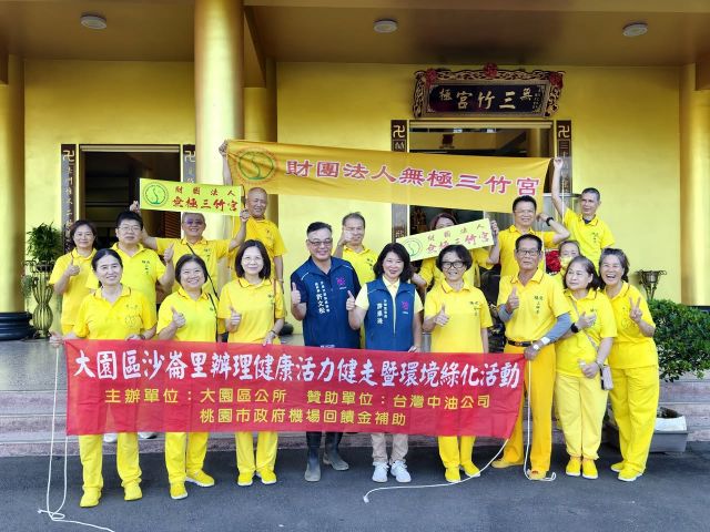 桃園市大園區,沙崙里社區發展協會為推廣健康生活、凝聚社區情感,於6月21日特別舉辦了社區健走活動。當天清晨,里民們精神奕奕地聚集在保安宮,經游素珠里長帶領下,展開這場充滿活力的健走行程。 此次健走活動特別規劃了別具意義的路線,其中一個重要站點便是位於沙崙里內的無極三竹宮。無極三竹宮是當地重要的信仰中心,長年積極參與社會公益,提供民眾心靈上的寄託。居民們經過此