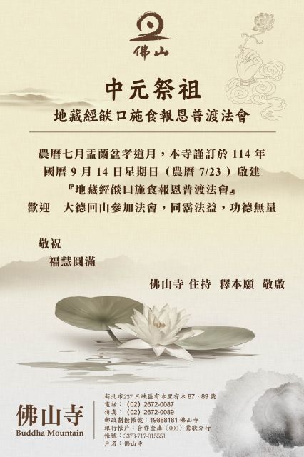 參加新北市三峽佛山寺年度中元祭祖報恩普渡法會